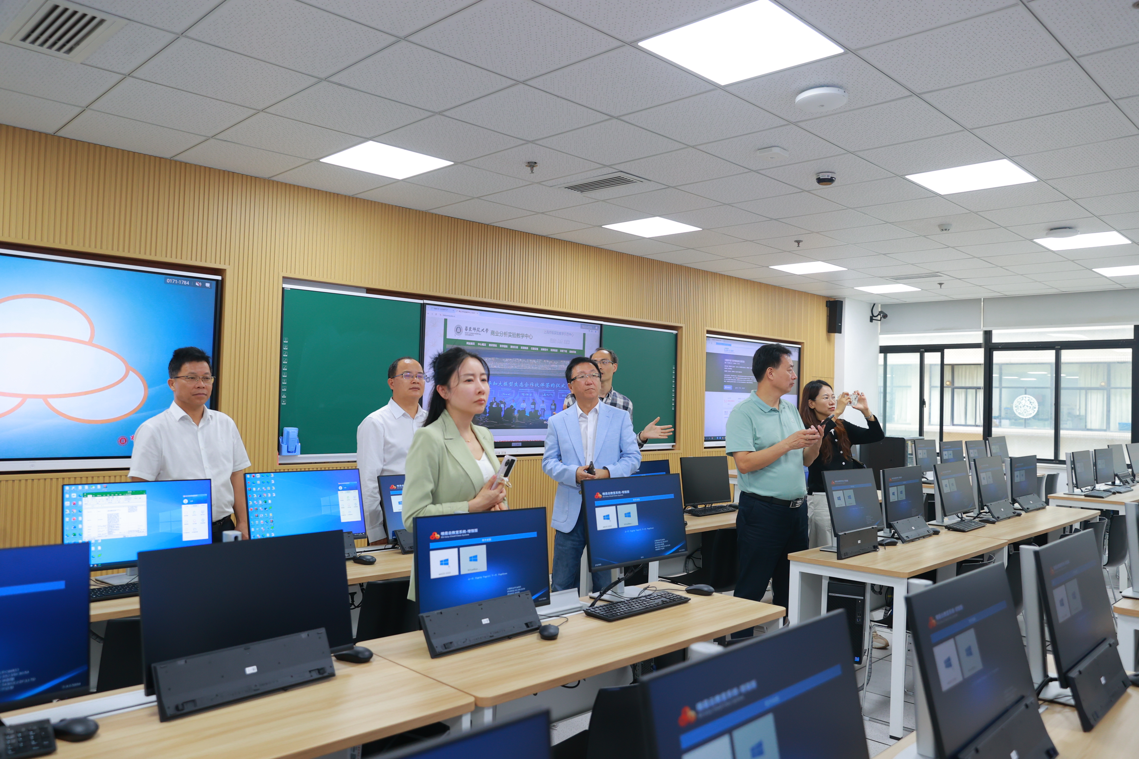 本年度中心接待了来自广东海洋大学、西安交通工程学院等院校的多支访问团,并受邀为上海立信会计金融学院等院校分享实验室建设申报经验;同时,谨防“坐井观天”,还主动走出去,参加《商业分析》类课程师资研讨会、人工智能赋能实验教学研讨会、中国国际大数据产业博览会等各类学科或专业性会议,进一步凝练与优化实验室建设运行方向。